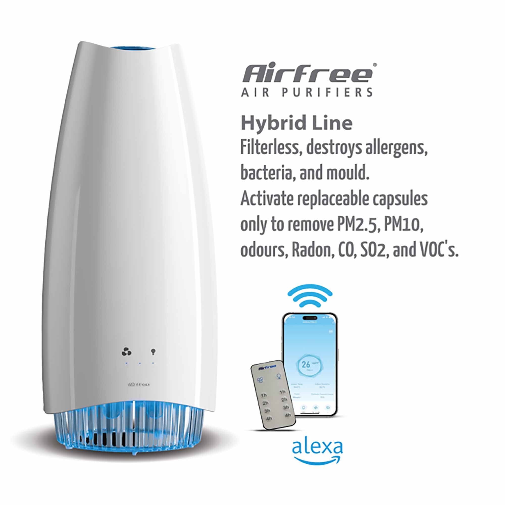 Airfree air purifiers are completely silent and kill 99.99% of all airborne micro-organisms including unwanted and harmful ozone, fungus, bacteria, allergens, viruses, mold spores, and more. The patented TSS technology used in Airfree air purifiers emits no ions.